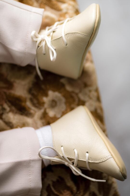 Pantof botez piele naturală – crem