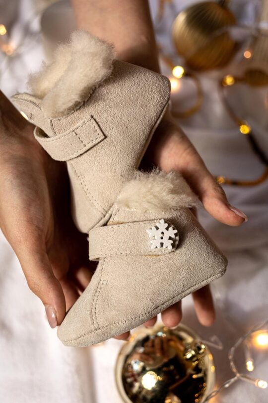 Pielea nu este tratată cu substanțe chimice sau coloranți care ar putea fi dăunătoare pielii bebelușului.