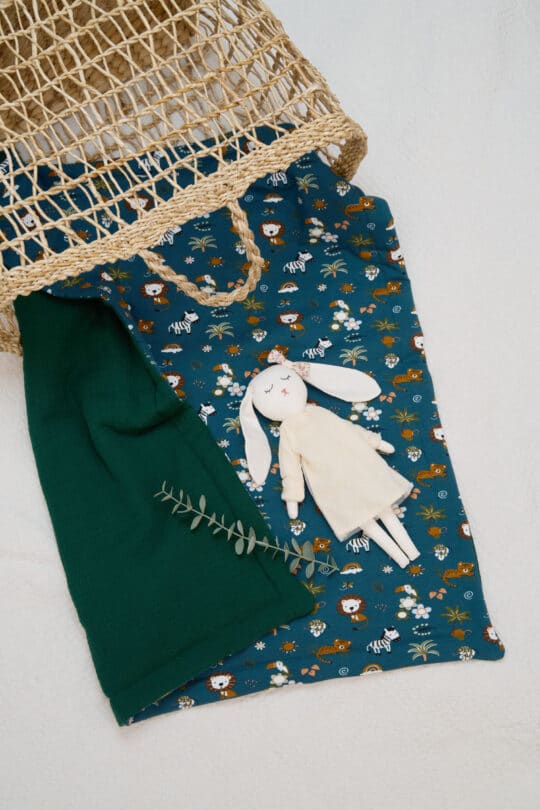Această combinație de culori și ilustrații jucăușe transformă păturica într-un accesoriu perfect pentru somn, plimbări sau momente de relaxare ale bebelușului tău, aducând o notă de aventură în fiecare zi.