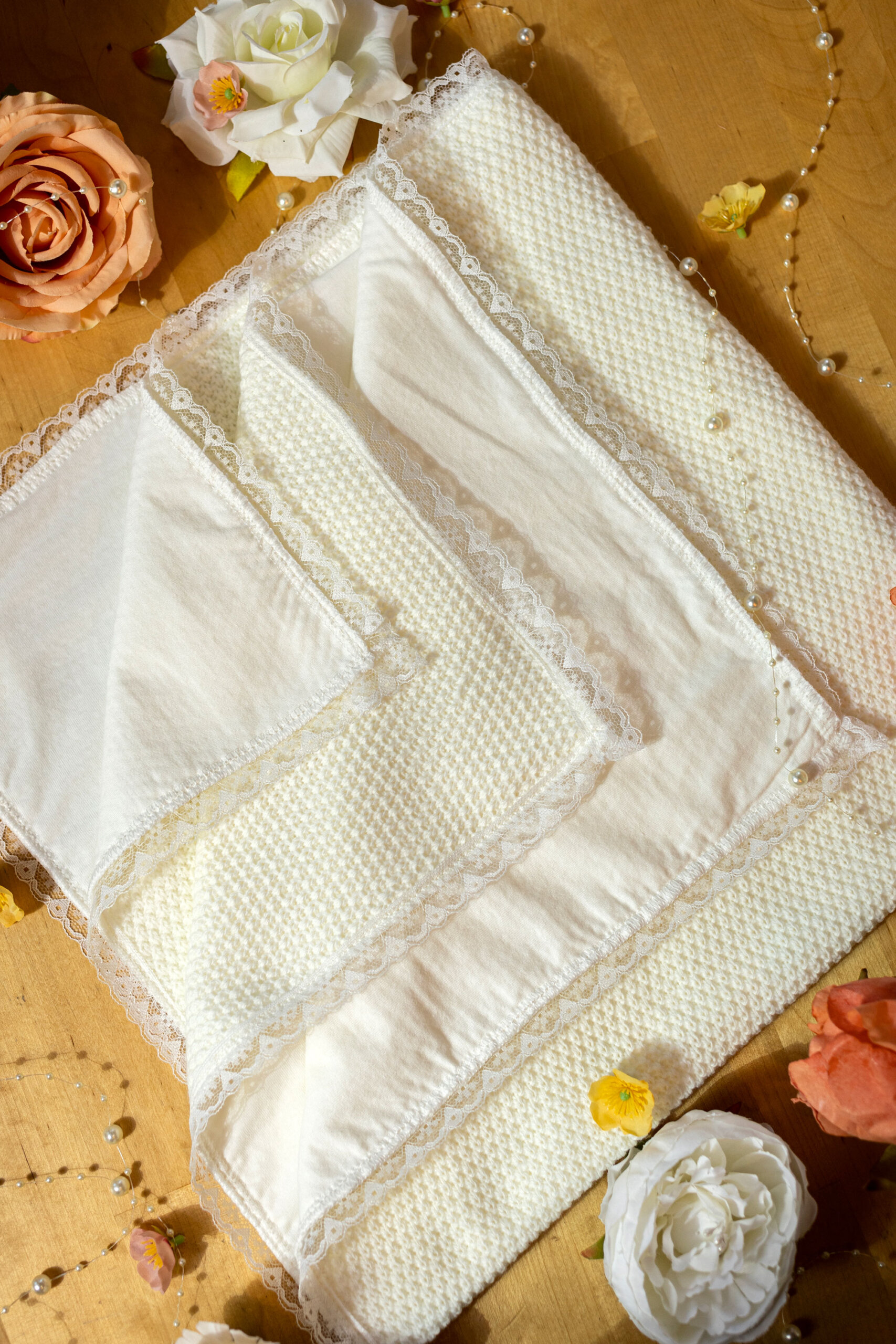Păturică Tricotată dublată cu bumbac – Ivoire