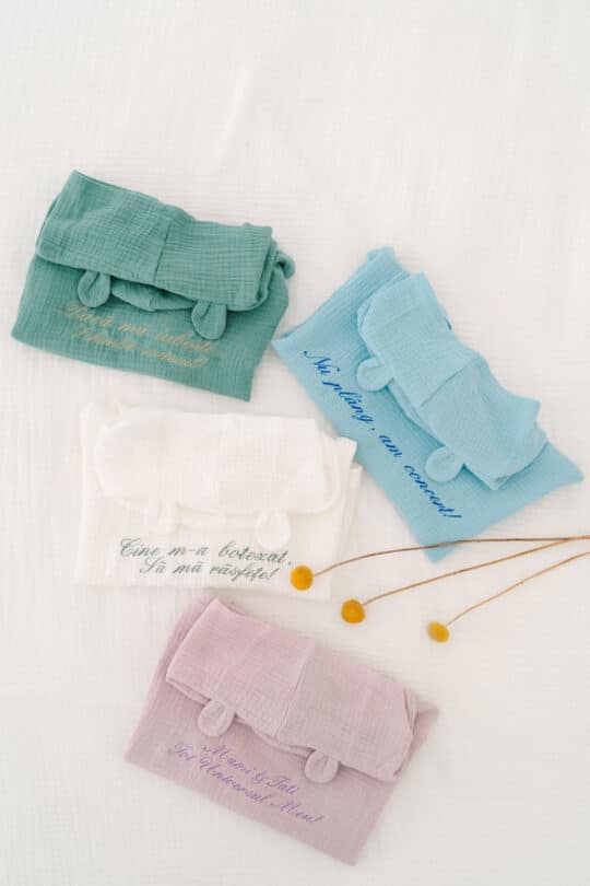 ✨ Se pot personaliza cu mesaje haioase, simbolice sau cu numele copilului – brodate cu grijă, pentru amintiri dragi și fotografii memorabile.