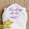 NOTĂ:Mesajul standard de pe capișon (ex. „Cu drag de la nași!”) nu se modifică.