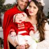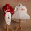 Redingota pentru bebeluși este prin excelență dedicată ceremoniilor. Redingota este din catifea, tip tunică, cambrată, evazată, închisă până sub gât și cu șliț la spate. Pe piept se găsesc detalii de dantelă, bandă satin și nasturi aurii. Cămașa este din poplin, alb-ivoire cu mâneci crețe și dantelă, manșetele cămășii se ivesc de sub mânecile catifelate ale redingotei.
