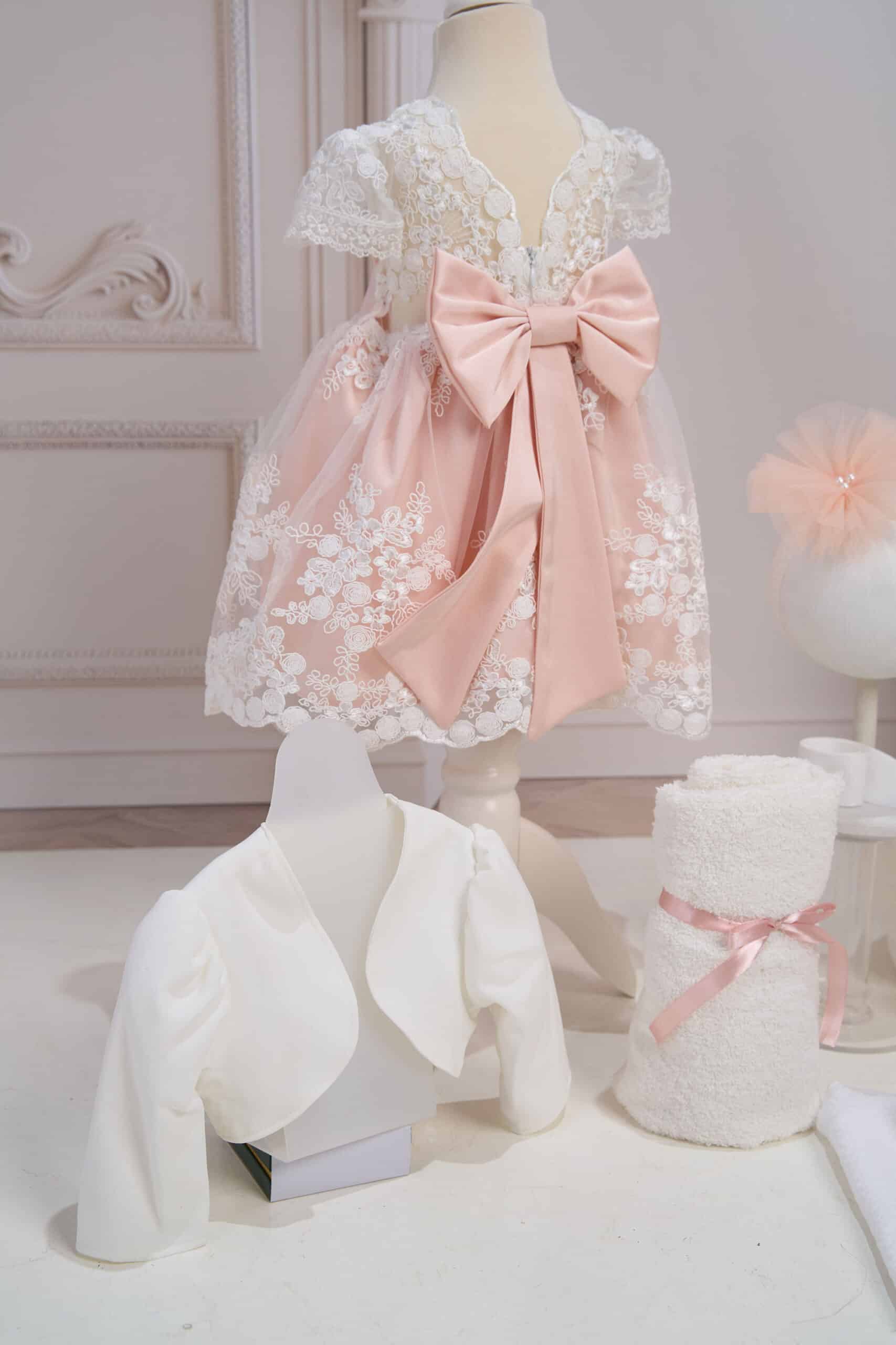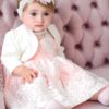 Compleul conține 3 piese: rochie, bentiță pampon, bolero