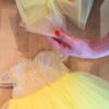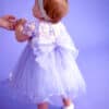 La spate se regăsește o fundă creativă și diafană din tull care transformă ținuta într-o apariție fabuloasă.