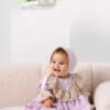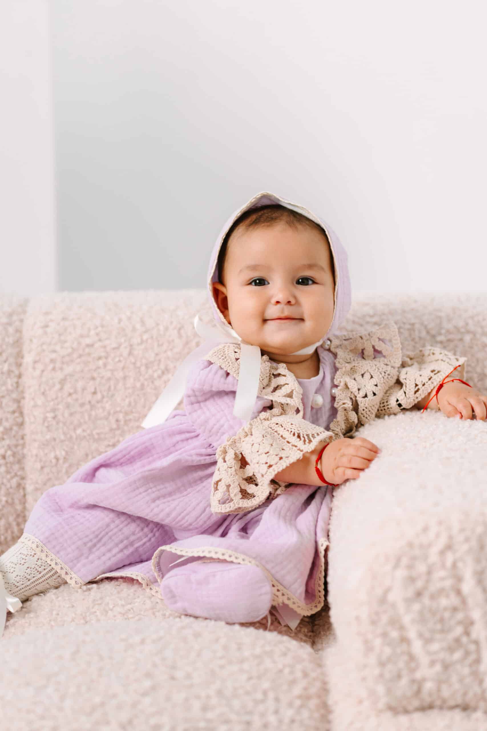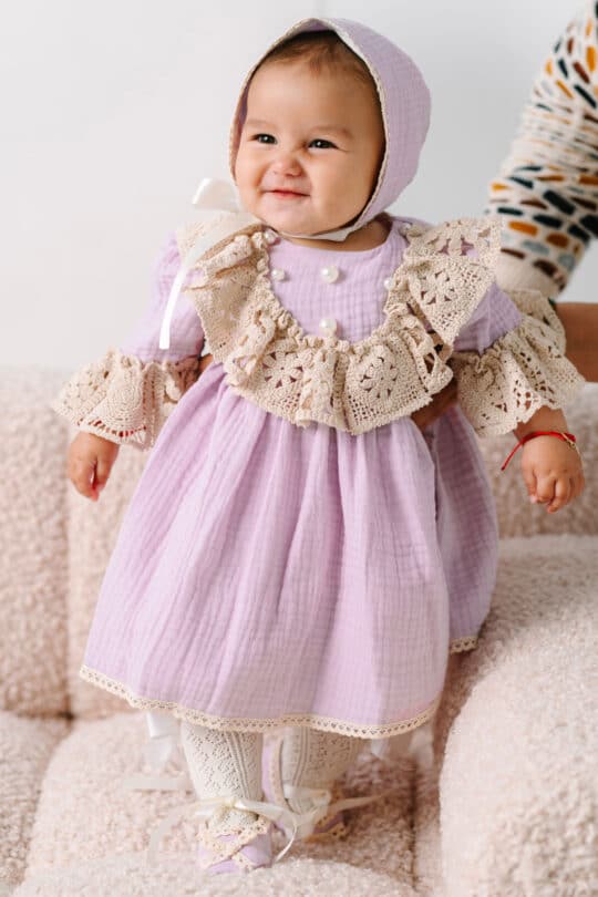 Rochiță Botez „Dantela Bunicii” din Muselină Triplustrat și Dantelă Croșetată – lila