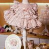 Rochiță Claire – roz – volane vintage – mânecă 3/4