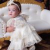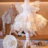 Rochiță Claire – volane vintage – ivoire – mânecă scurtă