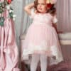 Rochița este o singură piesă și are un croi special ce dă impresia unei pelerine de zână peste o fustă din tull.