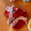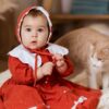- Măsurile mici ( 2-4 luni și 5-8 luni) sunt completate de o bonetă delicată și botoșei cu închidere cu cordoane de dantelă pe bumbac.