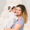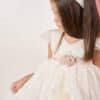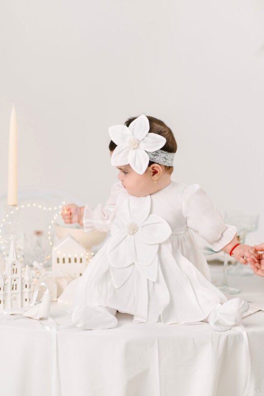 Rochie Fleur, set elegant botez cu floare supradimensionata