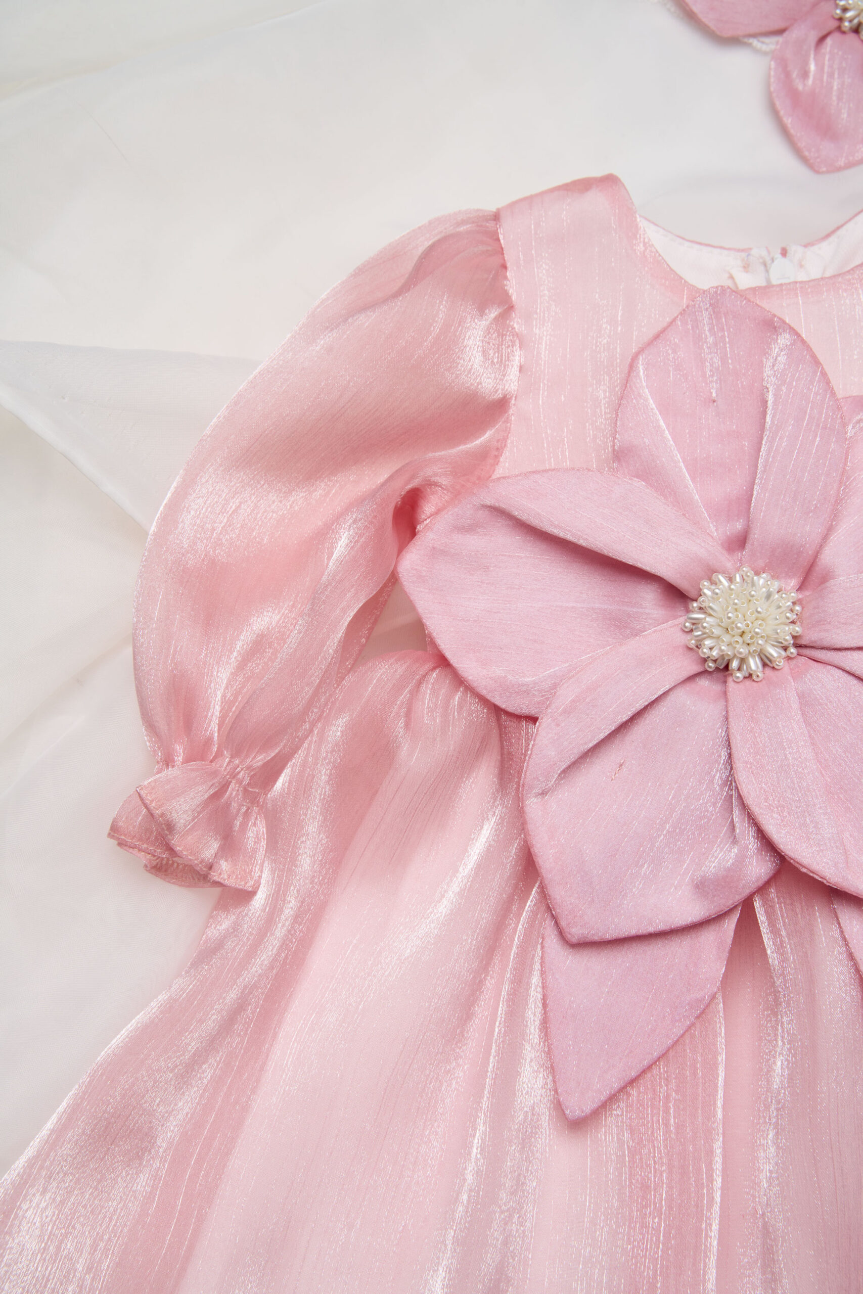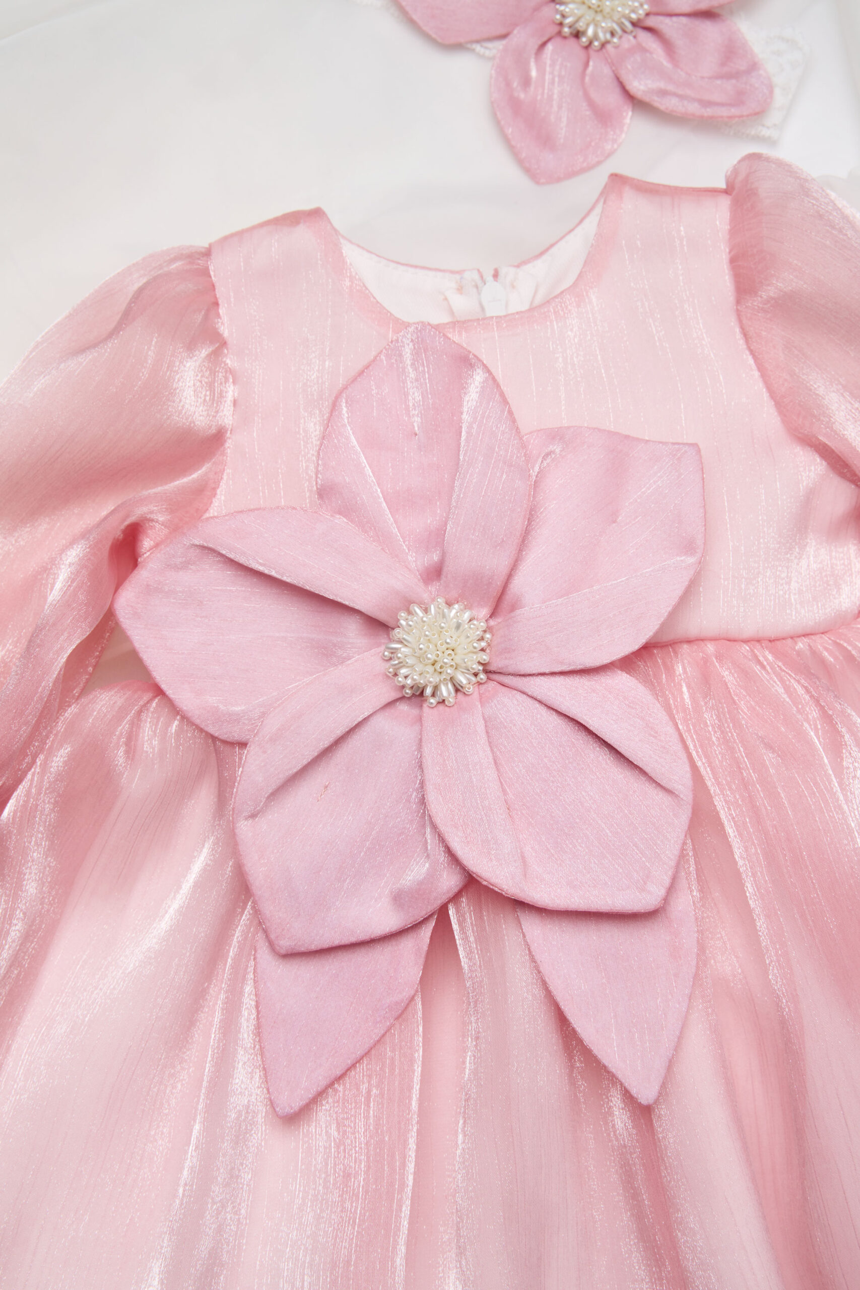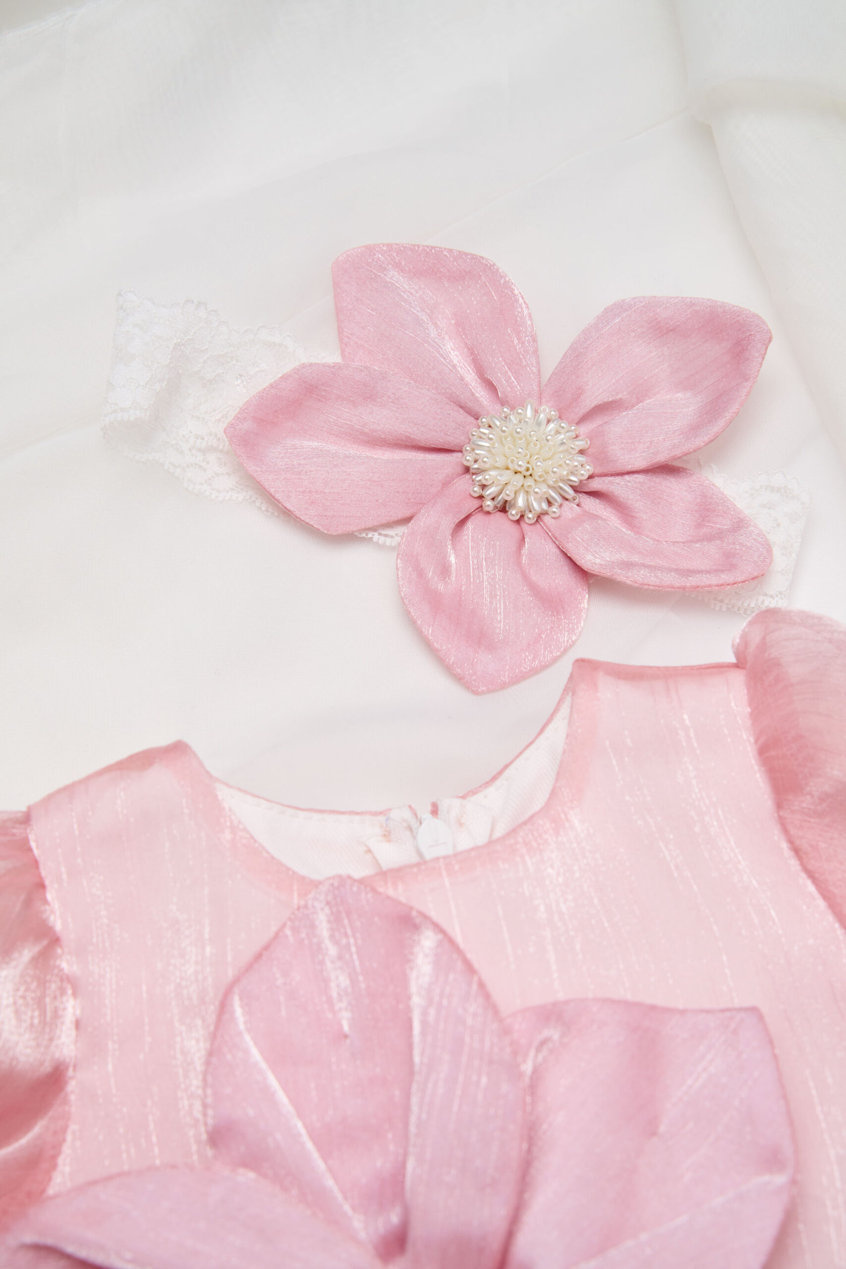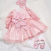 Rochie Fleur, set elegant botez cu floare supradimensionata