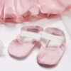 Compleul conține 3 piese: rochiță, botoșei, bentiță floare