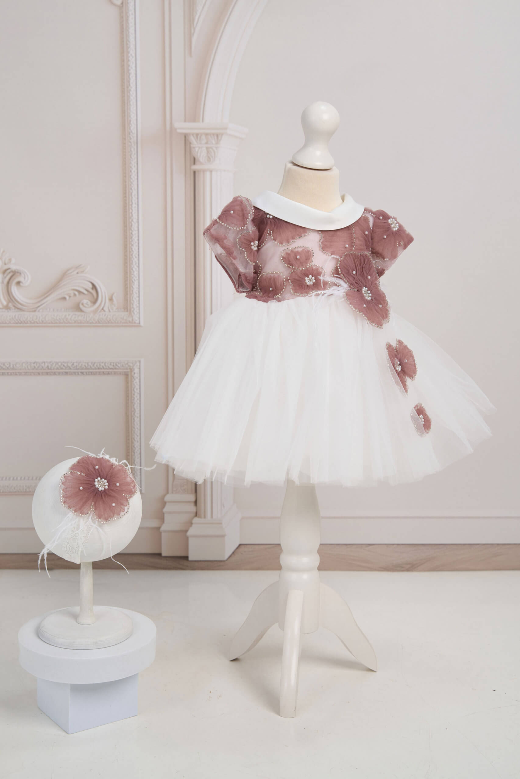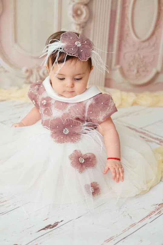 Compleul conține 2 piese: rochiță, bentiță cu floare
