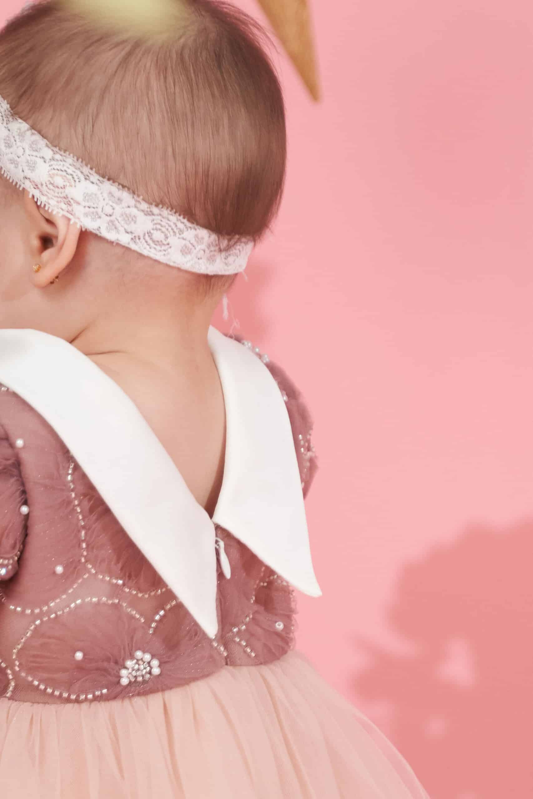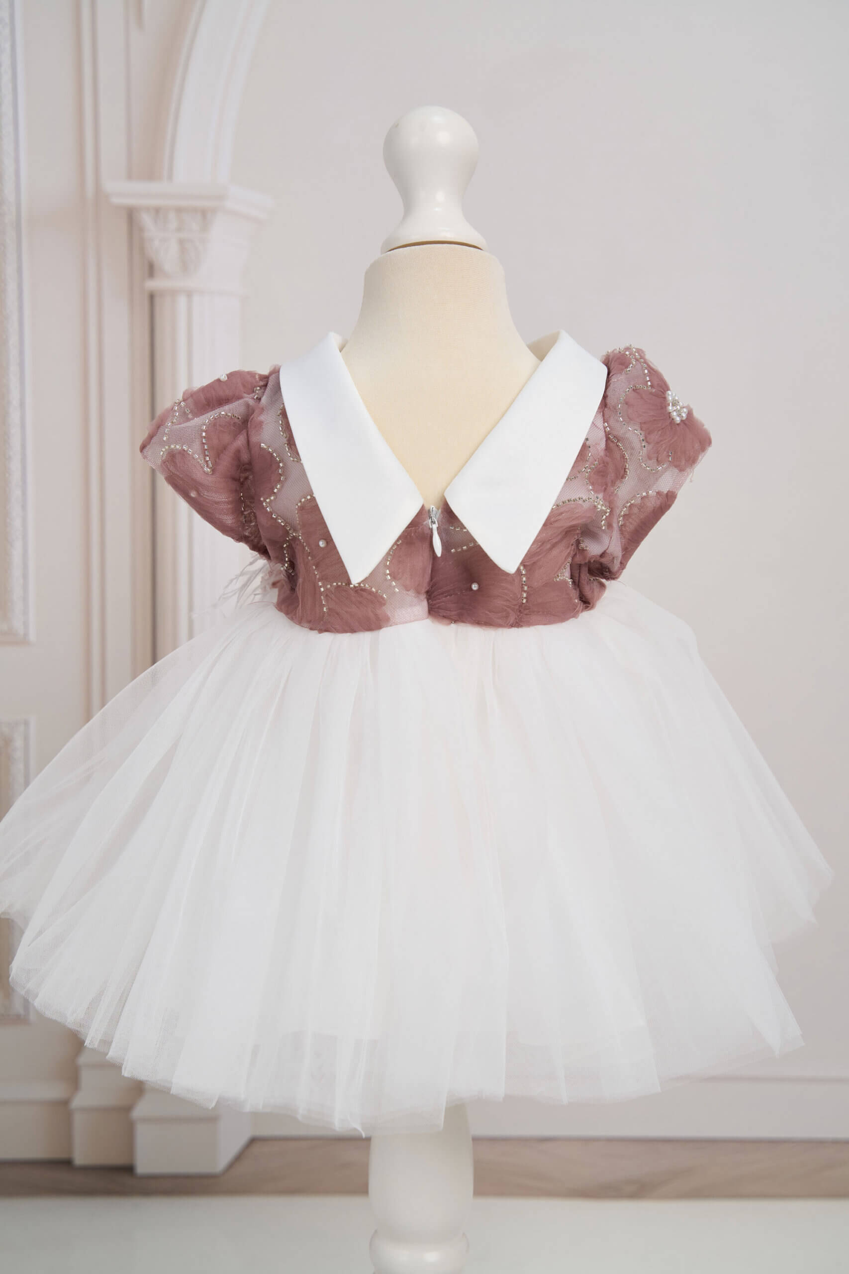 Rochiță Gloria – roz vintage (mânecă scurtă)