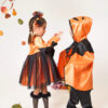 -Culori: Costumul combină portocaliul și negrul, creând un contrast puternic și festiv, specific sărbătorii de Halloween.
