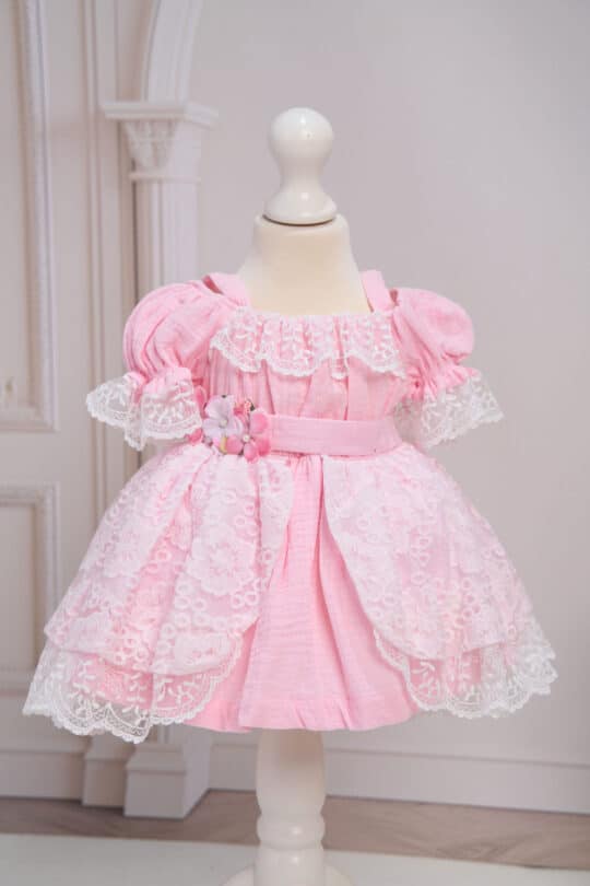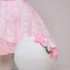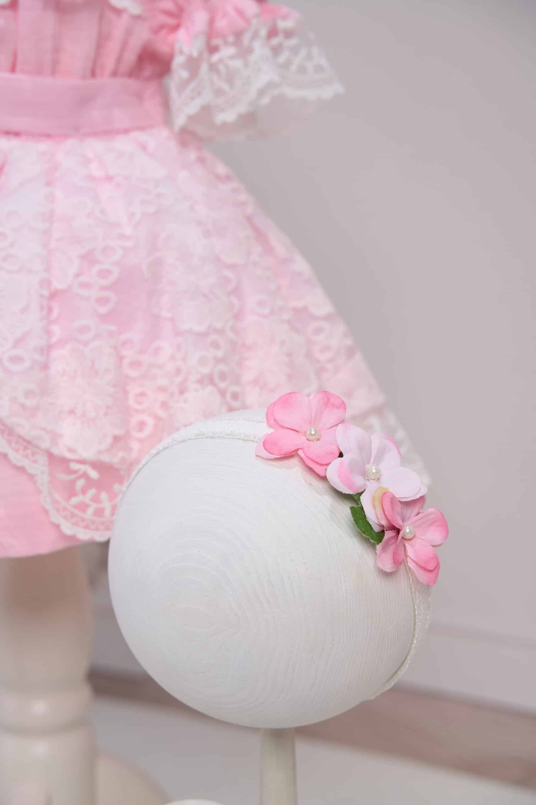 Rochița conține și o bentiță chic cu floari de cireș asortate rochiței.