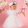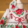 Această piesă reprezintă o combinație armonioasă între tradițional și contemporan, rezultând o rochița cu o poveste deosebită, care va atrage priviri admirative și va aduce o notă de prospețime și originalitate evenimentului tău special, botez, nuntă.