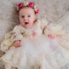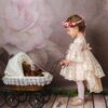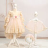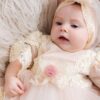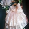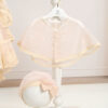 - Pentru măsurile 1 an, 2 ani, 3 ani si 4 ani: rochiță, capă, bentiță cu accesoriu trandafir și dantelă