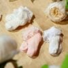 Rochiță manufacturată din dantelă Chantilly, fină, în culoare pastel.