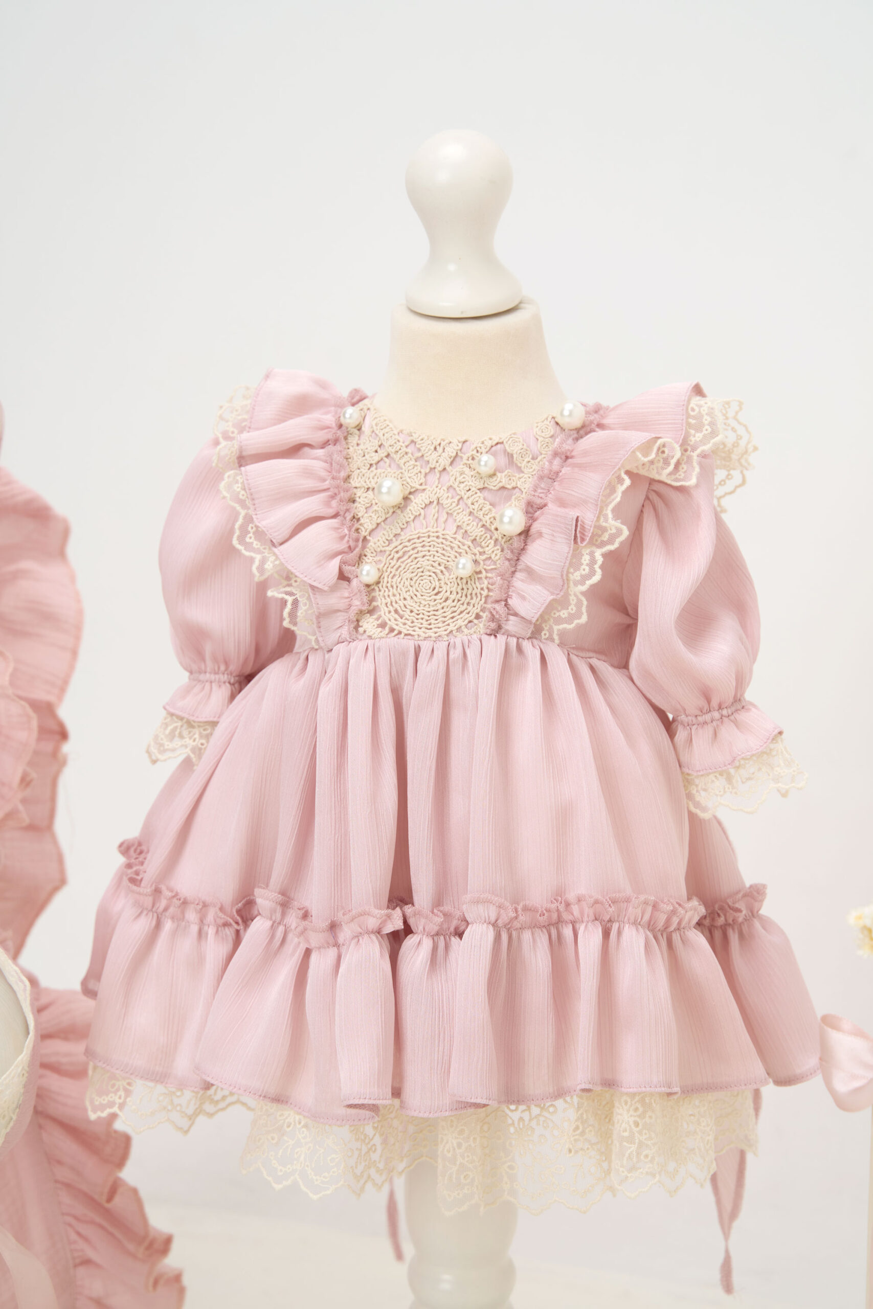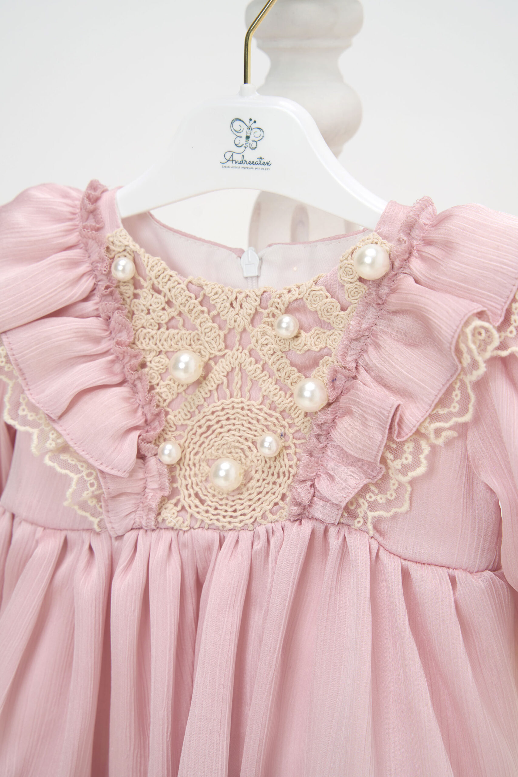 Rochiță Rază de Borangic – roz pudră (mânecă lungă)