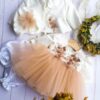 Rochiță din raiat brodat cu flori, ivoire – 2 piese
