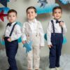 Costum de botez pentru băieți din stofă – 5 piese