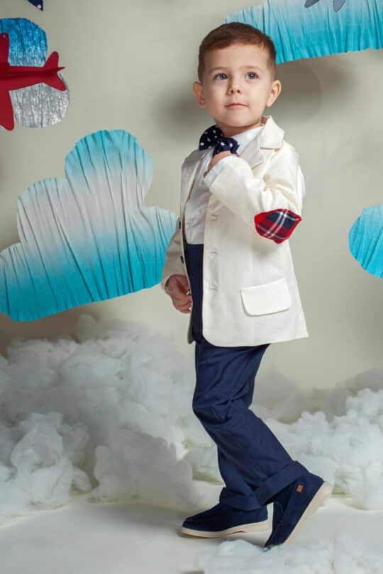 Costumul este cambrat, croit pentru silueta copiilor. O alegere sigură cu care nu veți da greș!