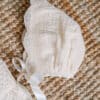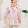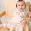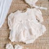 Salopetă bebe botez, 3 piese – IVY : salopetă tip rochiță, bonetă, botoșei