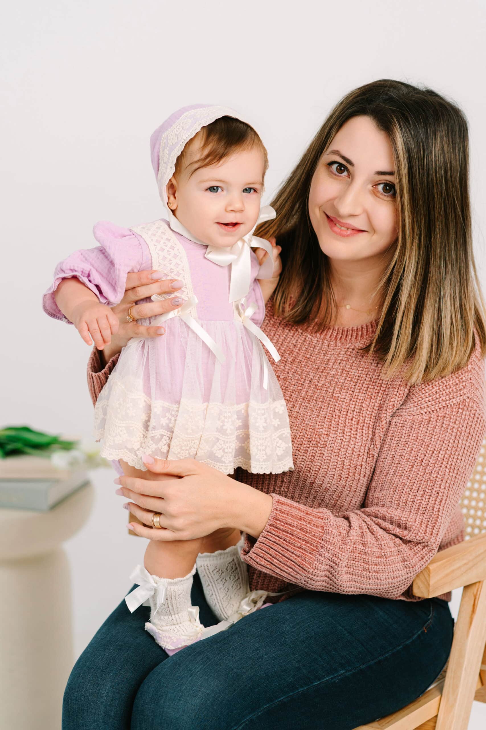 Mânecuțele sunt ușor bufante, cu elastic discret, care formează un mic volan la încheietură. Acest detaliu oferă un aspect adorabil, perfect pentru fotografii.