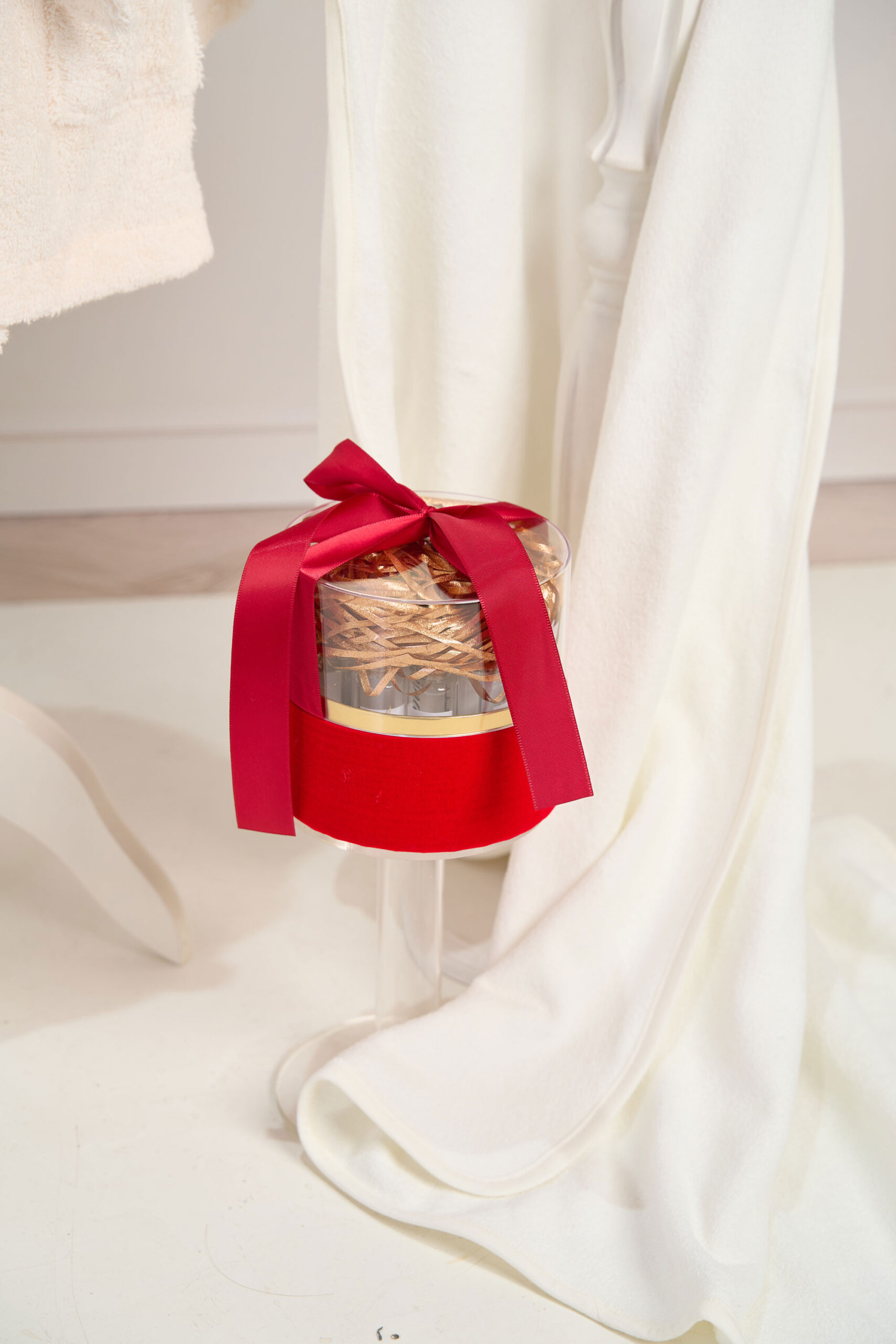 Include un halat pufos pentru bebeluș, un prosop cu capișon și un amestec de plante și mirodenii alese cu grijă, fiecare purtând o semnificație profundă: de la flori de tei pentru liniște, până la busuioc pentru iubire și protecție.