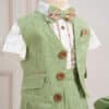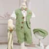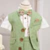 ✂︎ Costum botez băieți –Un costum de botez elegant, într-o culoare vibrantă din stofă cu desen mărunt și nasturi mari, simpatici!