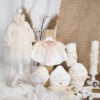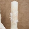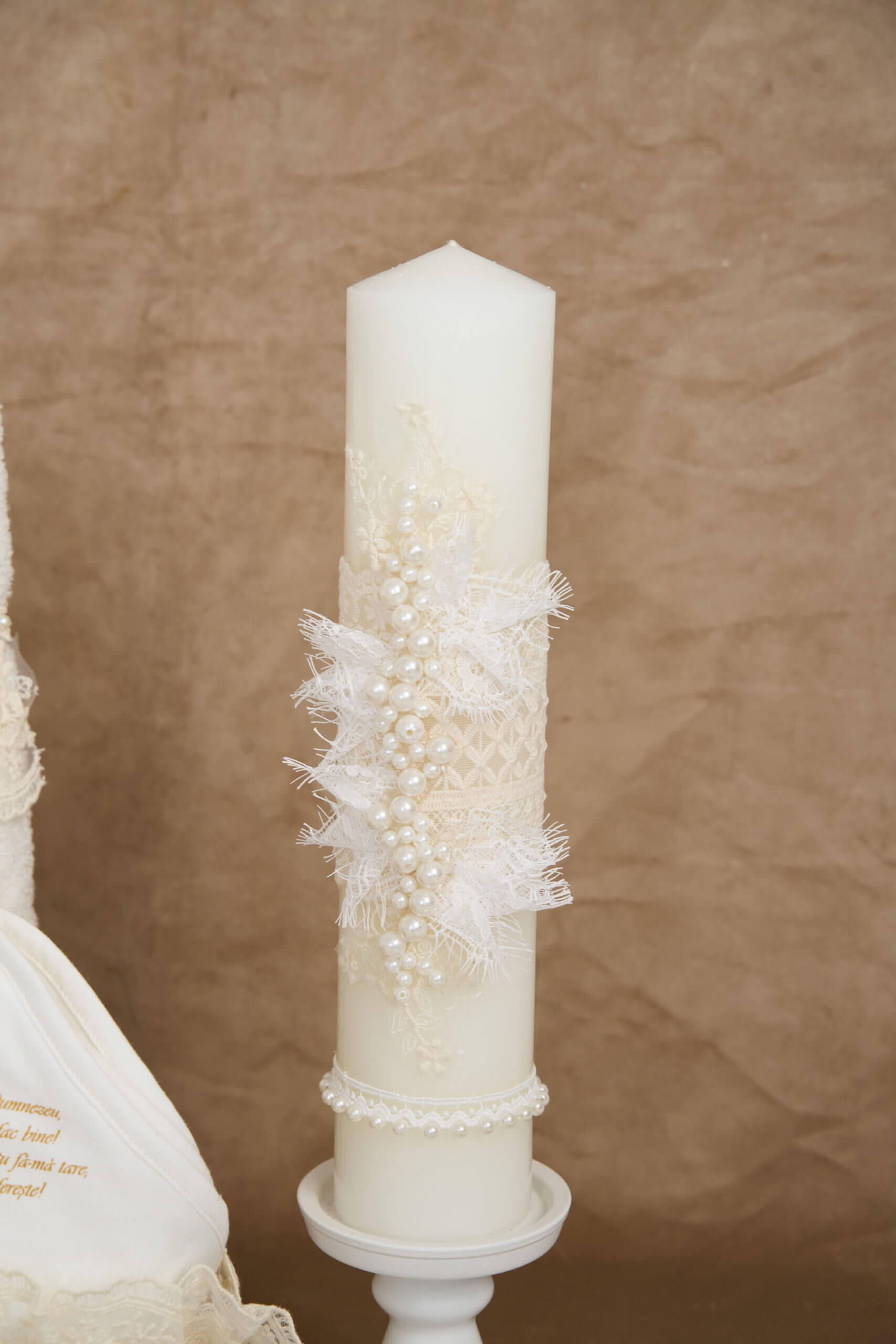🕯️ Lumânare de botez – Lumânare asortată cu material vaporos din tull, dantelă și perle fine.