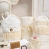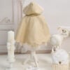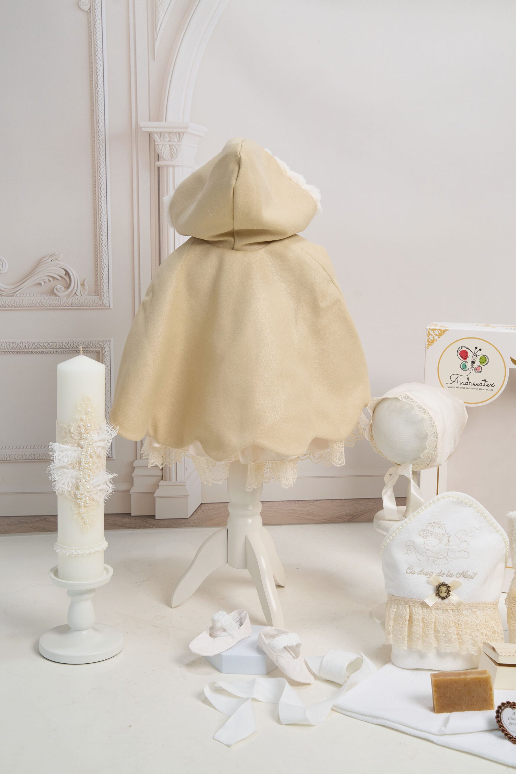 Set botez Borangic și capă Floare bej+ Trusou + Lumânare