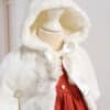 Un set perfect de botez pentru sezonul rece, cu rochie moale, bonetă și botoșei, asortate cu o capă călduroasă cu glugă.