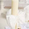 🕯️ Lumânare de botez – Modelul este decorat cu o fundă mare, confecționată din material texturat, accesorizată cu perle fine pentru un aspect sofisticat și delicat