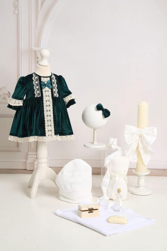 Set botez esențial Leonor verde + Trusou + Lumânar