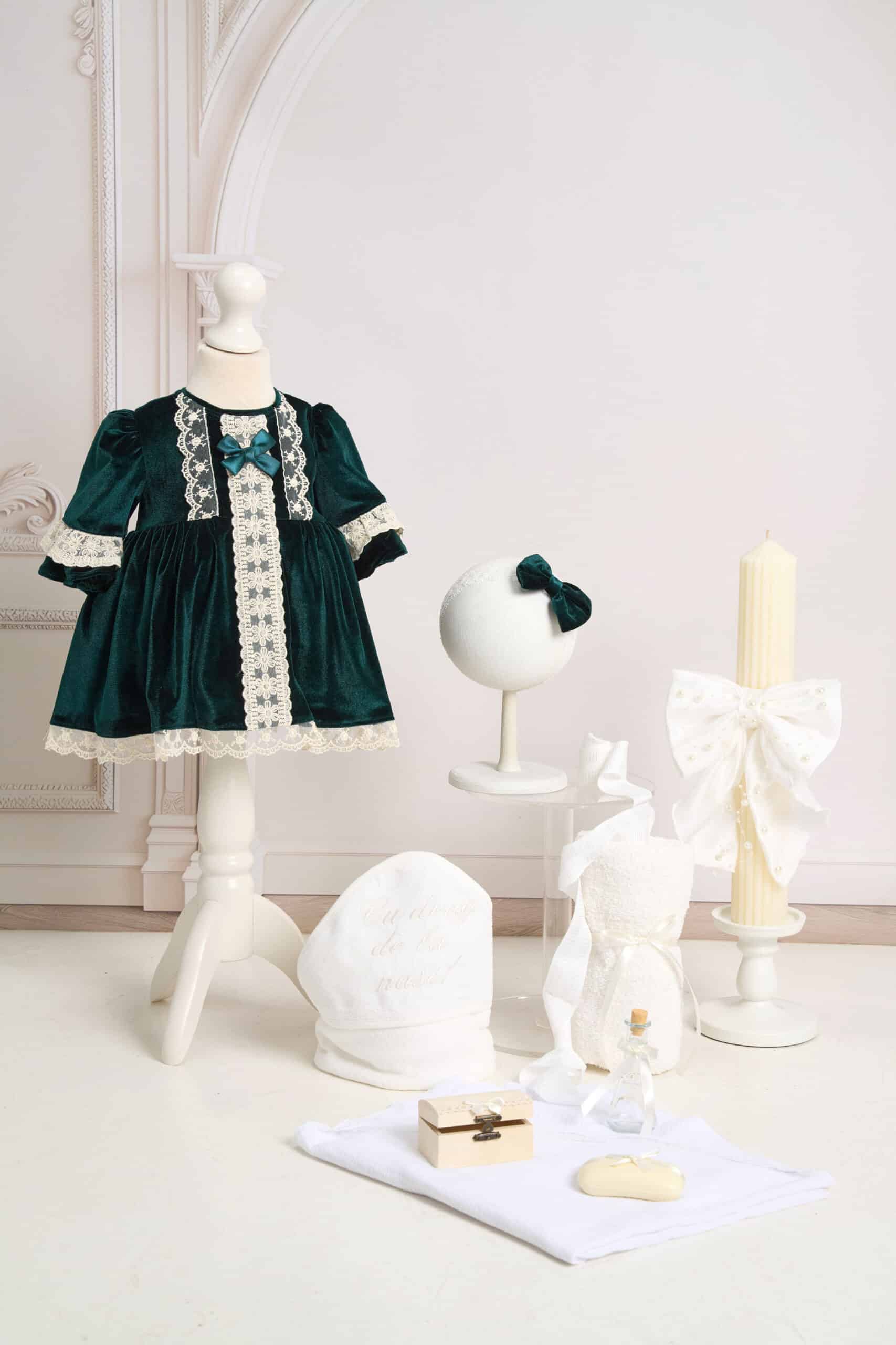 🎀 Rochiță – Leonor – Un set elegant, manufacturat din catifea moale cu detalii rafinate de dantelă, compleul conține 2 piese: rochiță cu mânecă lungă, bentiță