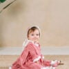 Aceasta rochie botez fetita este disponibilă în trei nuanțe calde și rafinate – roz prăfuit, roșu scorțișoară și ivoire natural –, „Petite Coeur” este alegerea ideală pentru botezuri boeme, ședințe foto în lumină naturală și amintiri de familie pline de tandrețe.