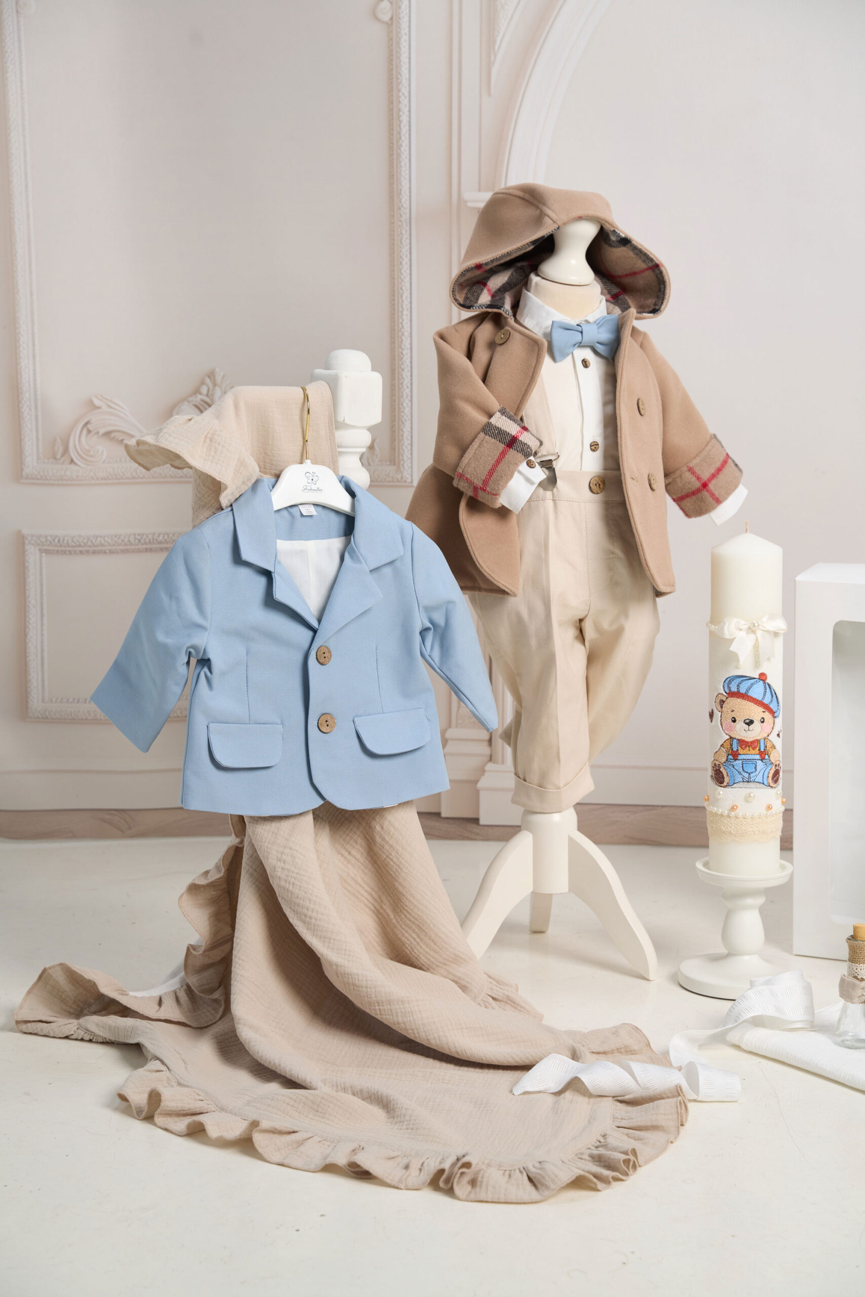 Profită de reducerea exclusivă și oferă micuțului tău o ținută specială pentru prima lui ceremonie, creată cu grijă și drag în România.