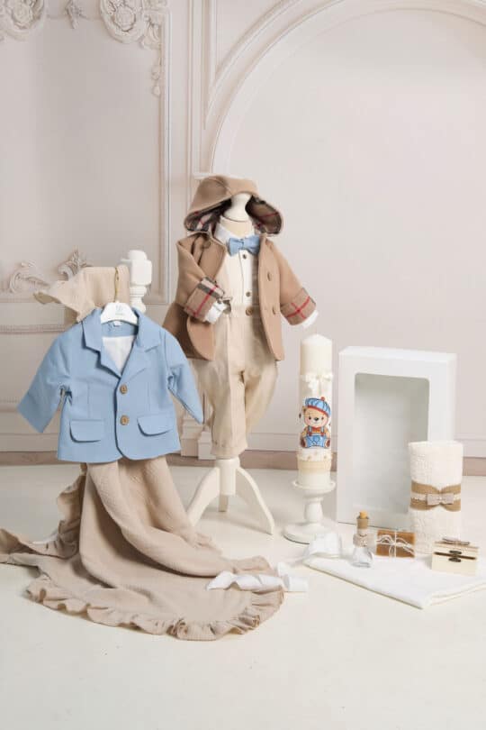 Transformă momentul botezului într-o adevărată sărbătoare cu acest trusou botez băieți, care include hăinuțe elegante, trusou și lumânare — acum la un preț special!