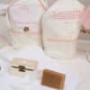 🕊️ Trusou de botez 9 piese – Tot ce ai nevoie într-un singur loc! Prosop cu capișon bebeluș, scutec bumbac cu capișon bebeluș, prosop preot, pânză de mir, fașă, săpun, sticluță mir decorată, cutiuță pentru prima șuviță și mini ramă “mărturie” – pentru poză bebeluș sau iconiță