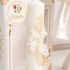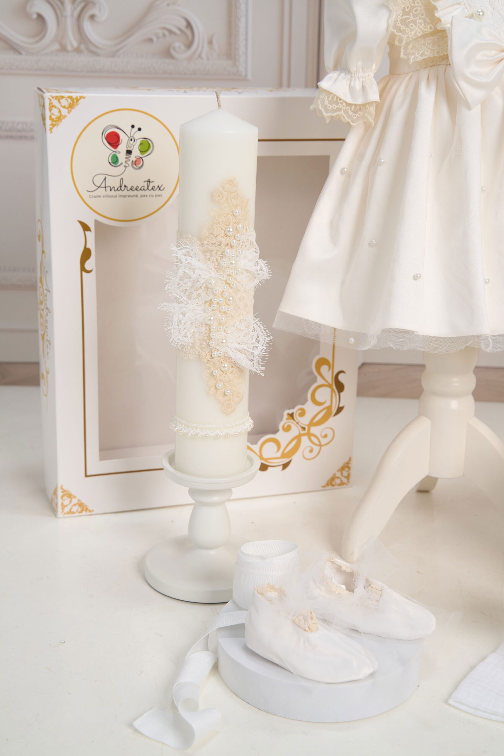 🕯️ Lumânare de botez – Lumânare de botez cu dantelă fină și fundă elegantă cu perle – un model rafinat, creată pentru botez.