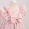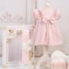 🎀 Set 3 piese – Rochie de botez fetiță Celeste cu dantelă, perle și fustă din tul – elegantă și delicată.
