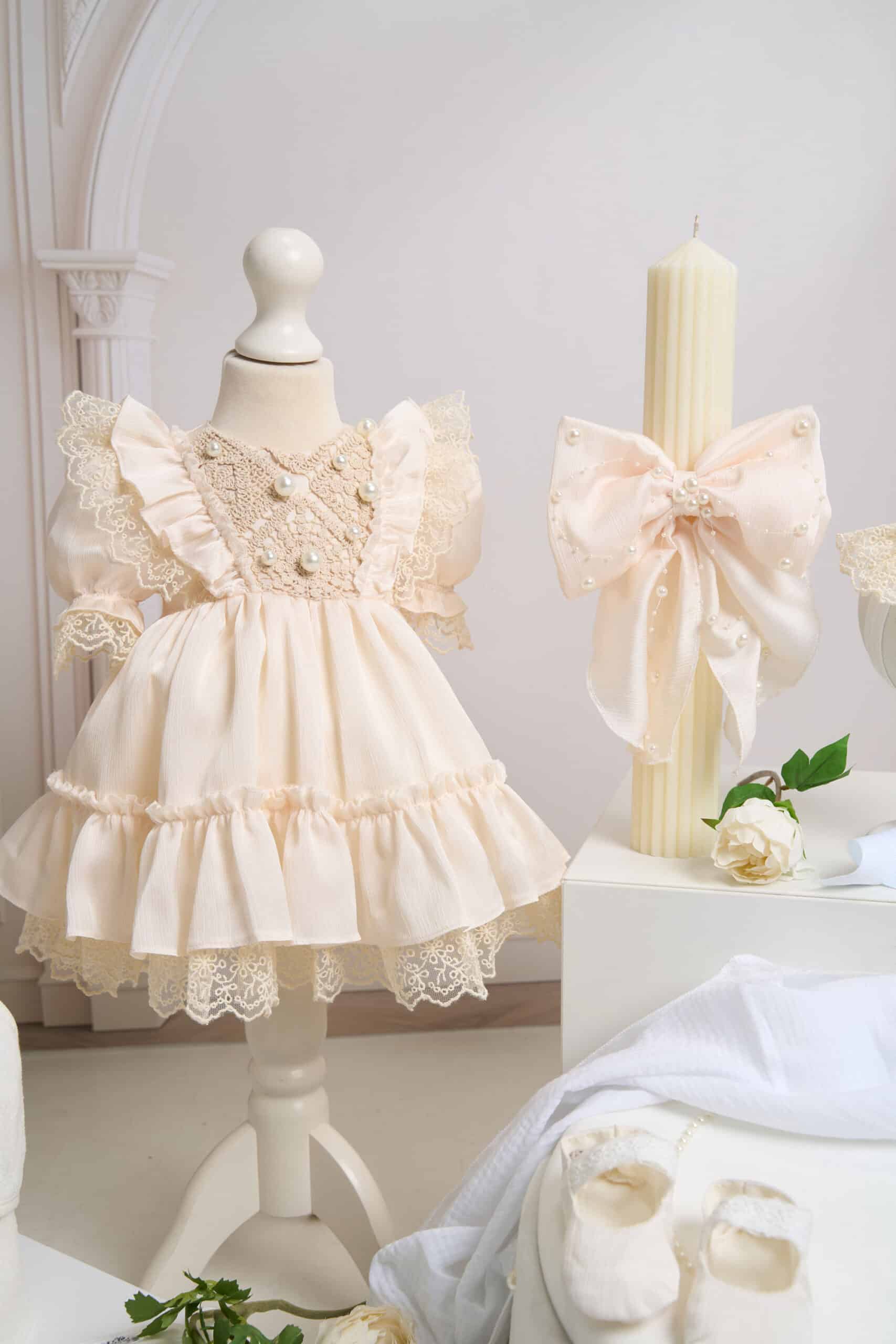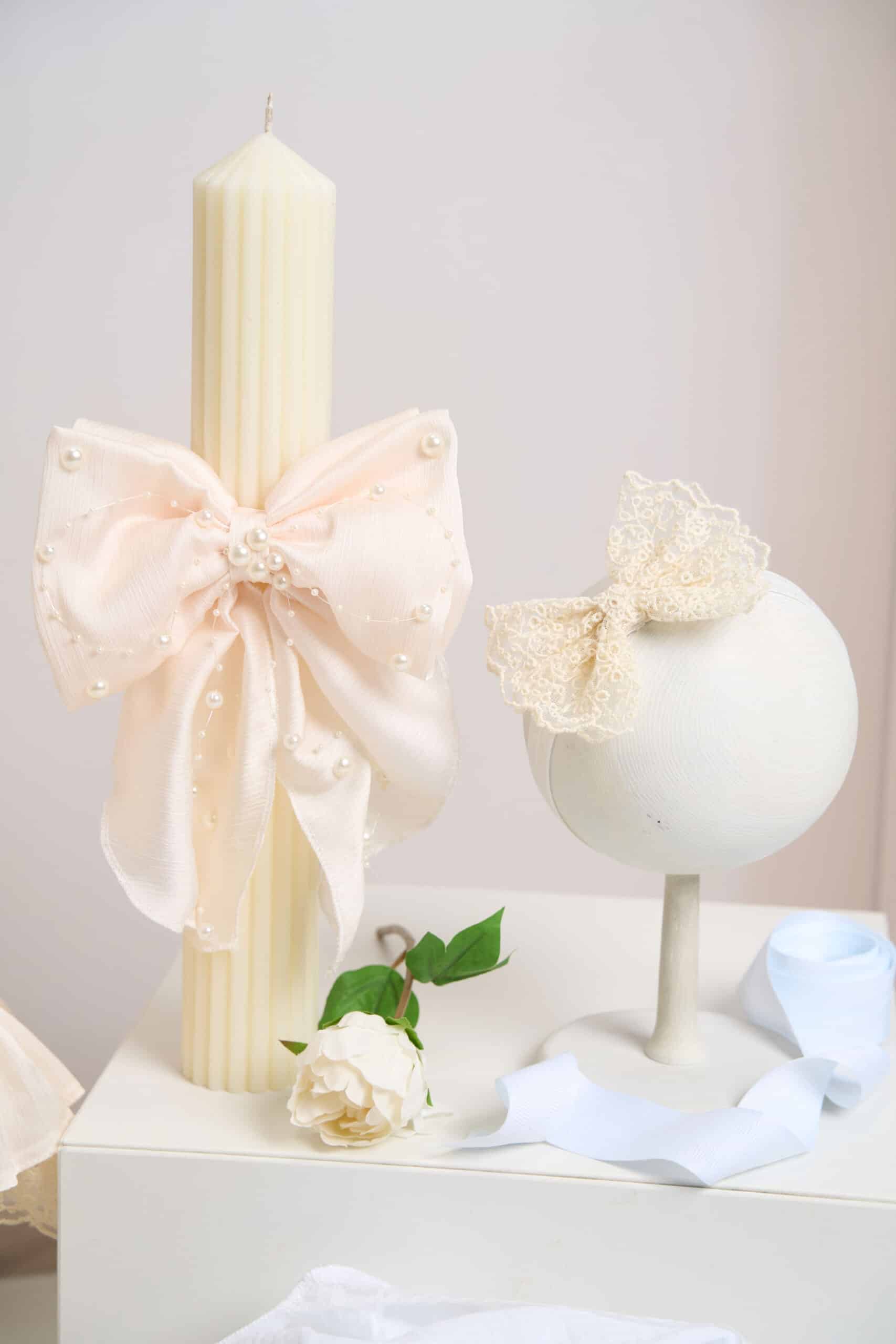- Lumânare botez – A33 cu fundă elegantă și perle – grej