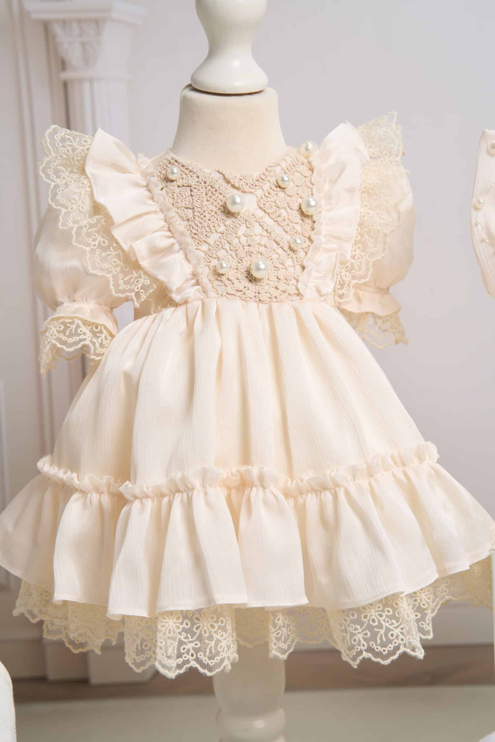 - Set 3 piese fete – Borangic//grej (rochiță+bentiță+botoșei)