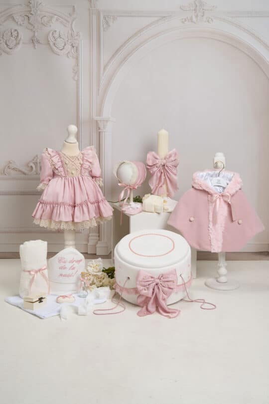 Set complet botez (trusou) – Borangic – roz (mânecă lungă)