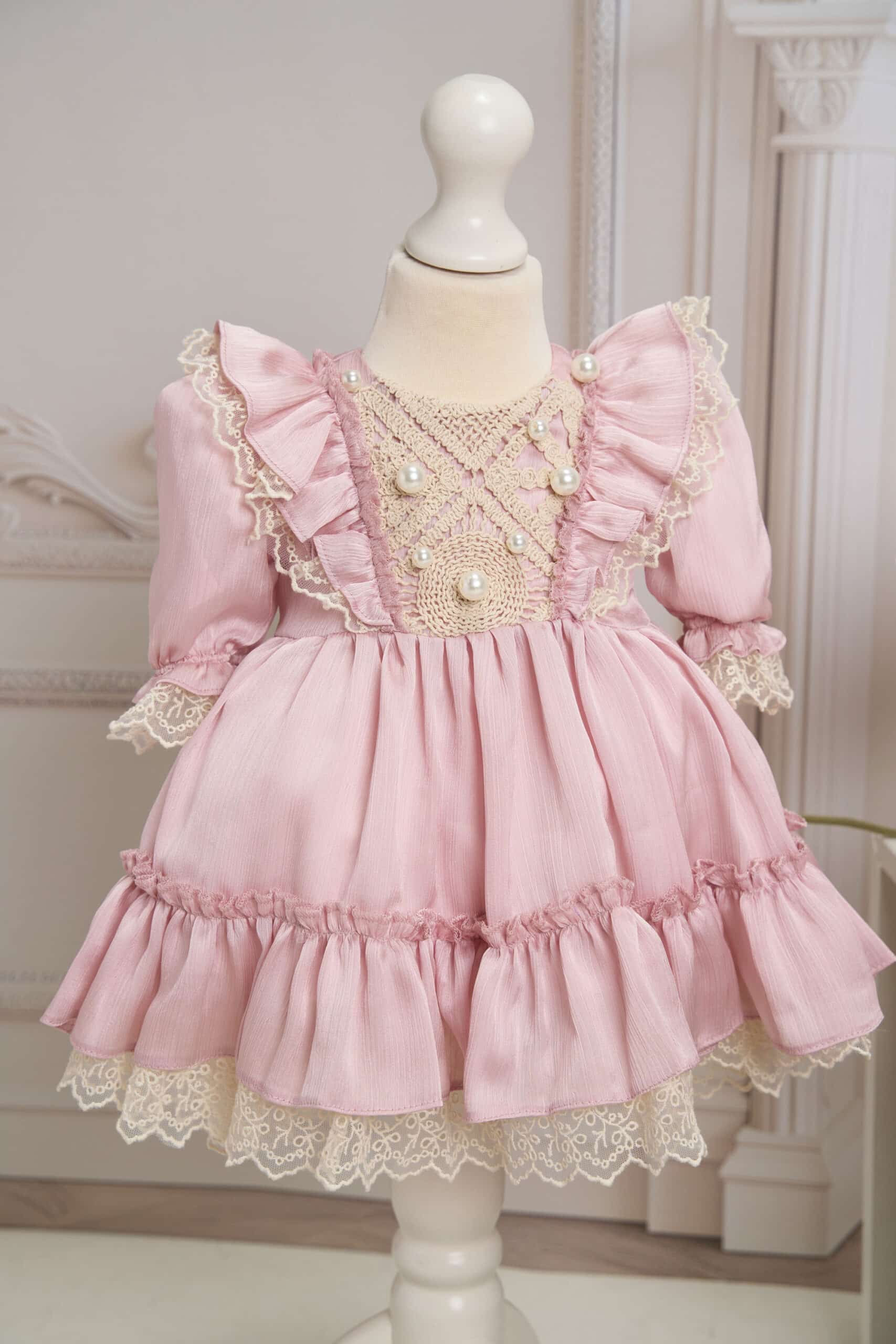 - Set 3 piese fete – Borangic//roz (rochiță+bonetă+botoșei)