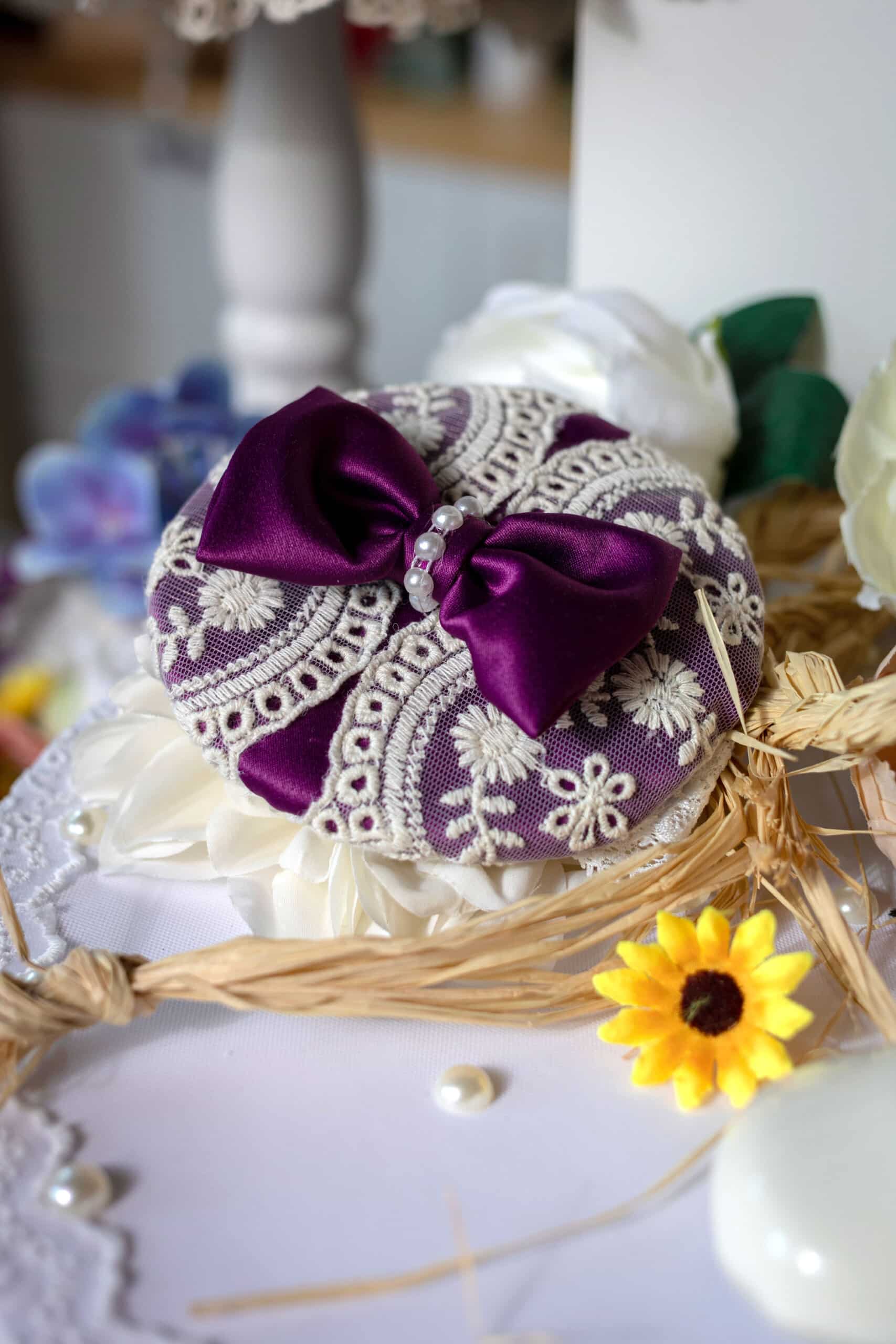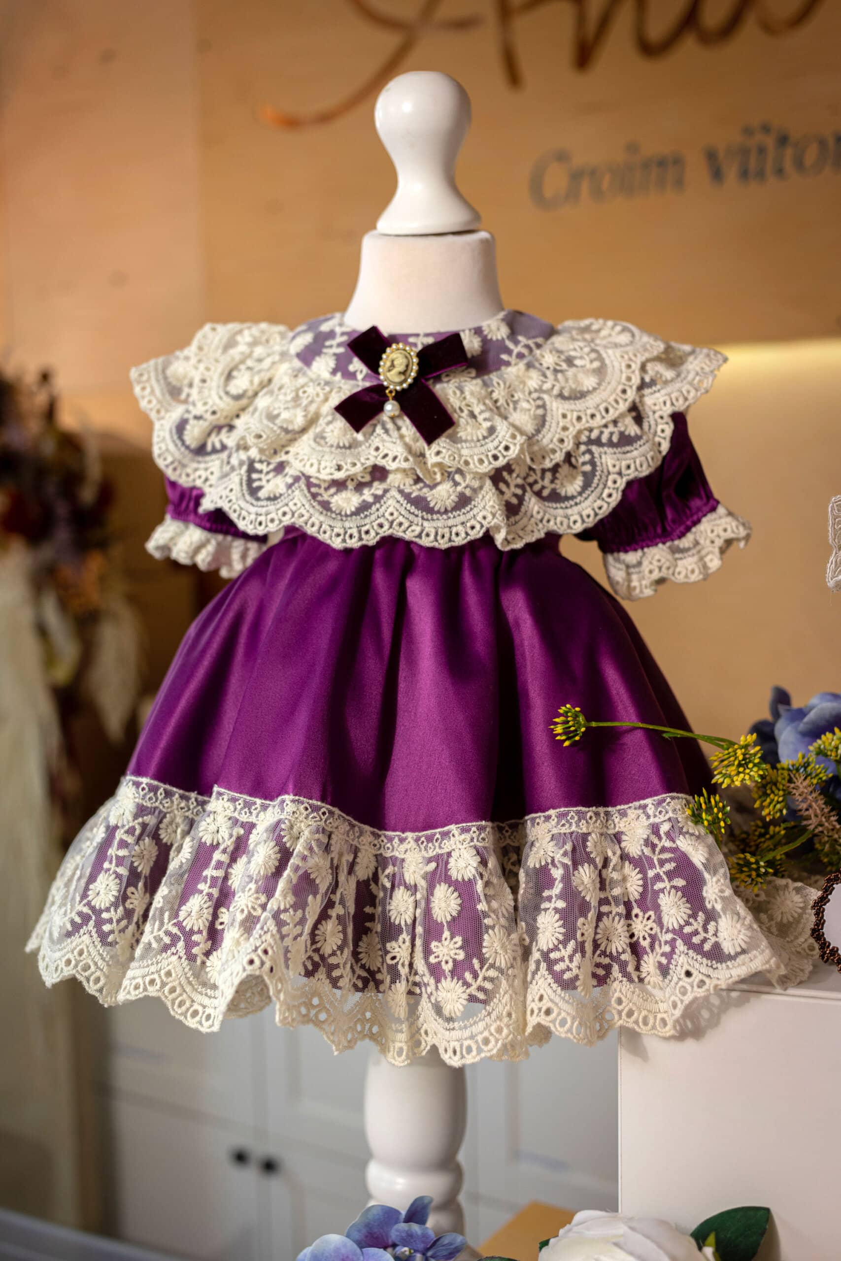Set complet botez (trusou) – Catherine – mov – mânecă scurtă