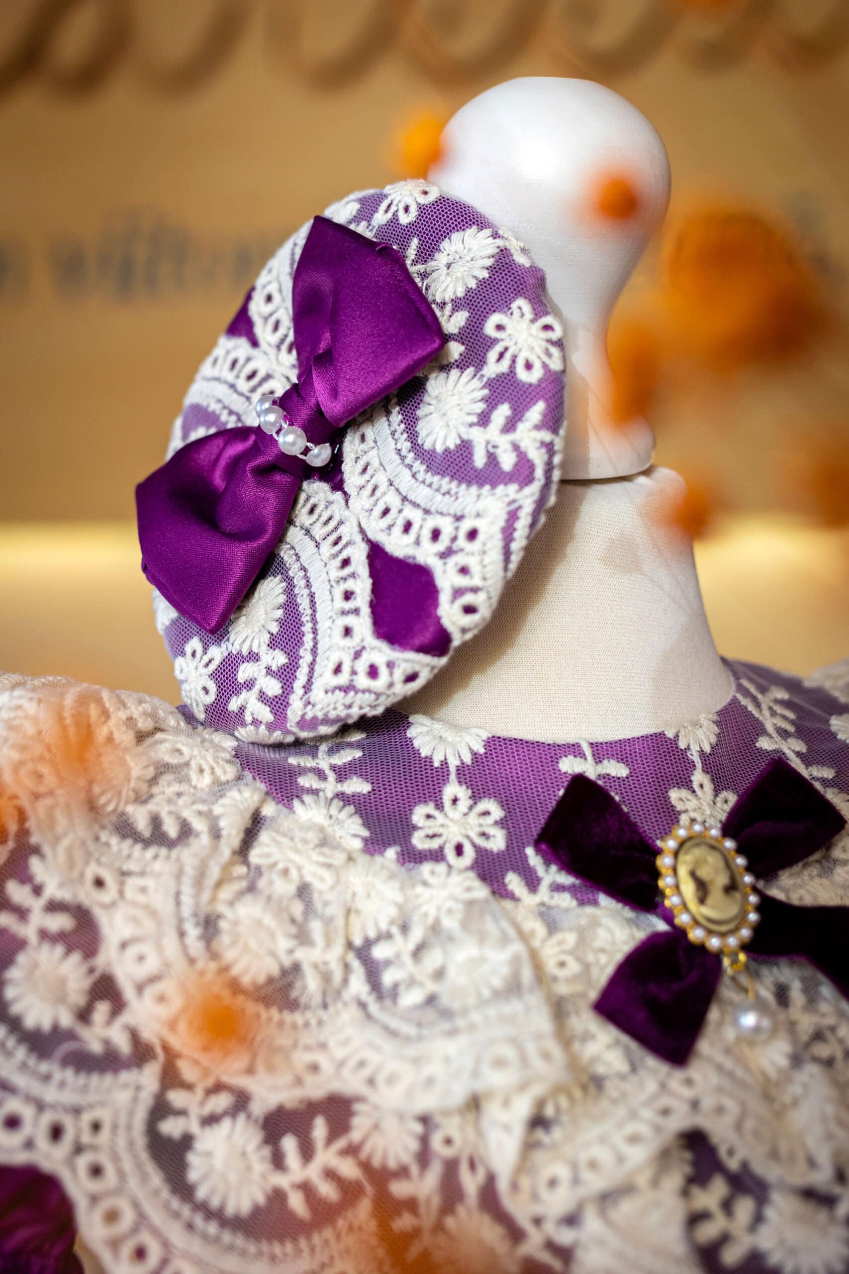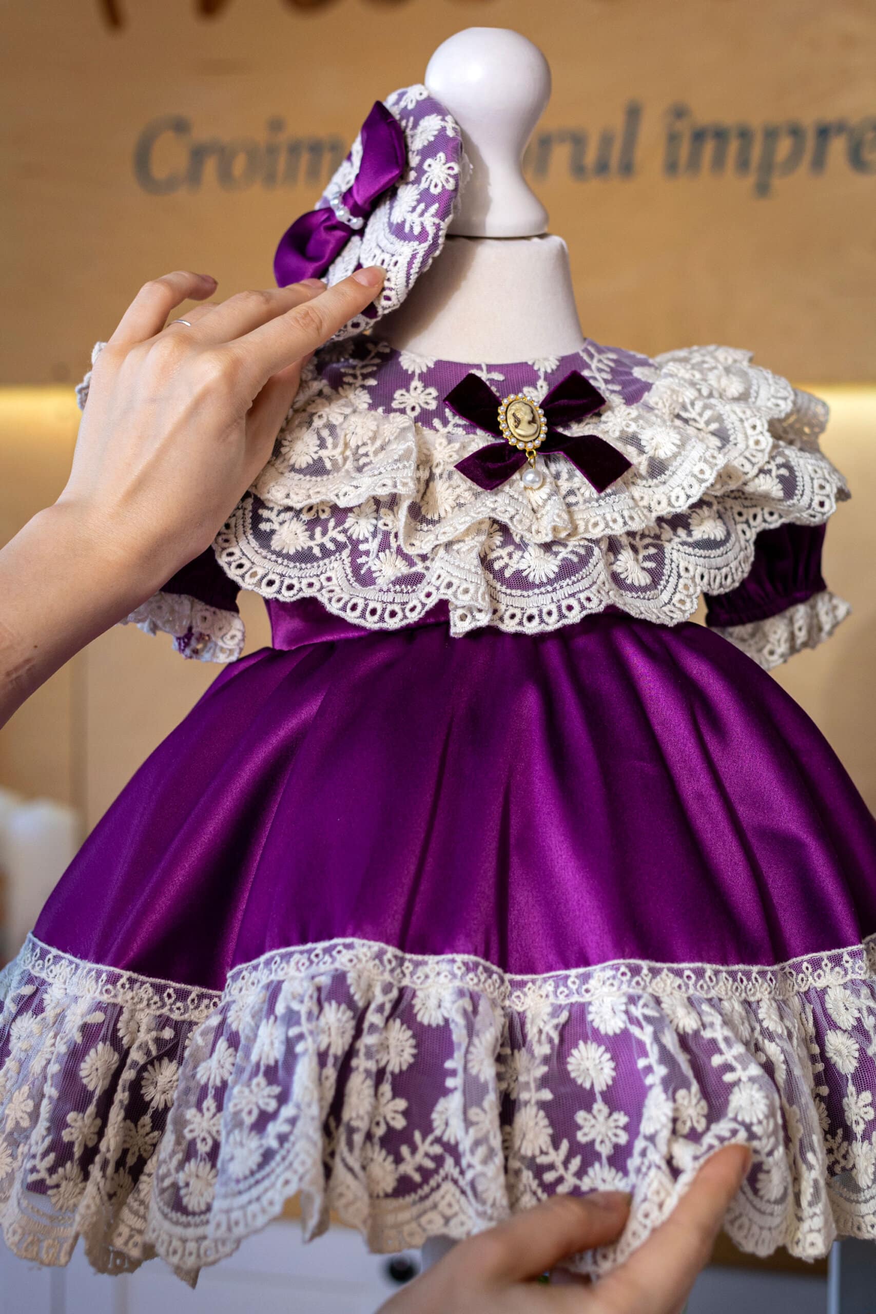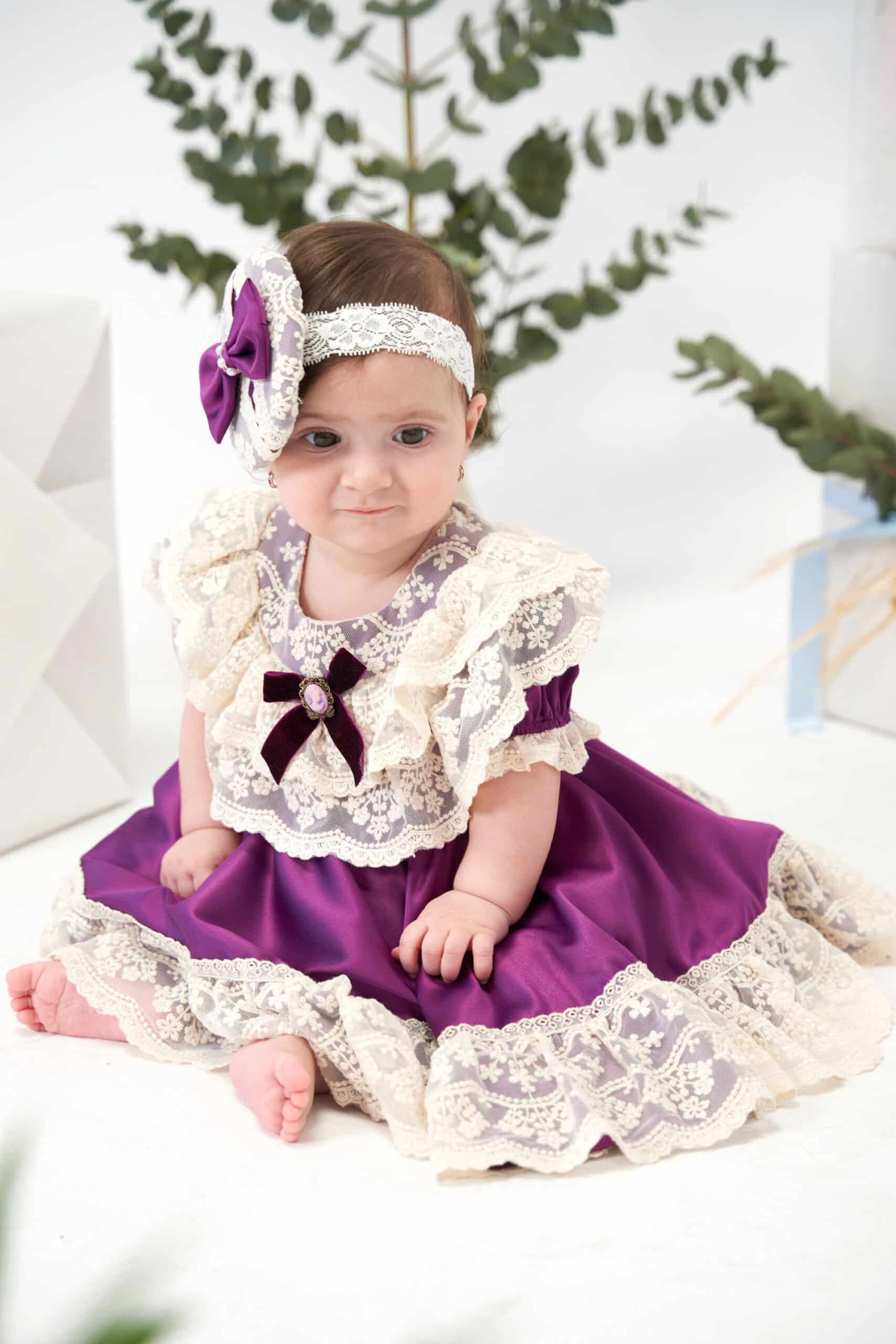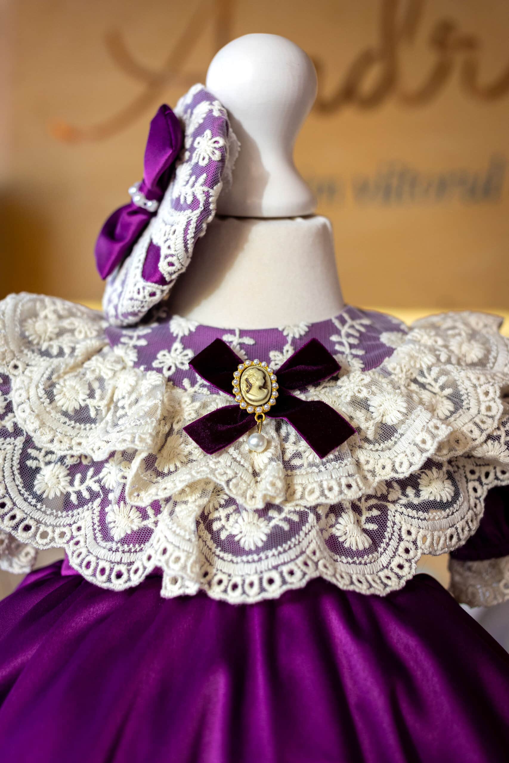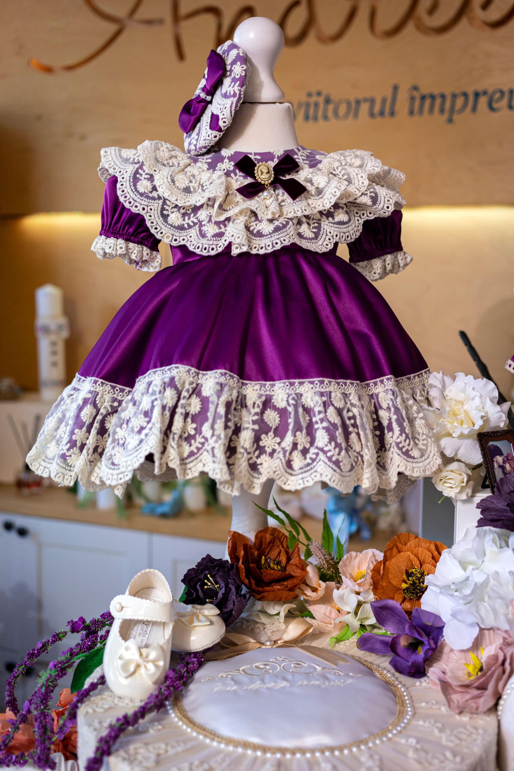 Set complet botez (trusou) – Catherine volane vintage – mov – mânecă scurtă